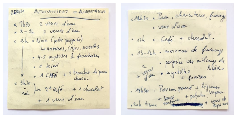 Par exemple, tu veux changer tes habitudes alimentaires. Alors tu vas noter dans un carnet, pendant une journée entière, chaque aliment solide ou liquide qui entrera dans ta bouche. Tu pourrais être surpris.
